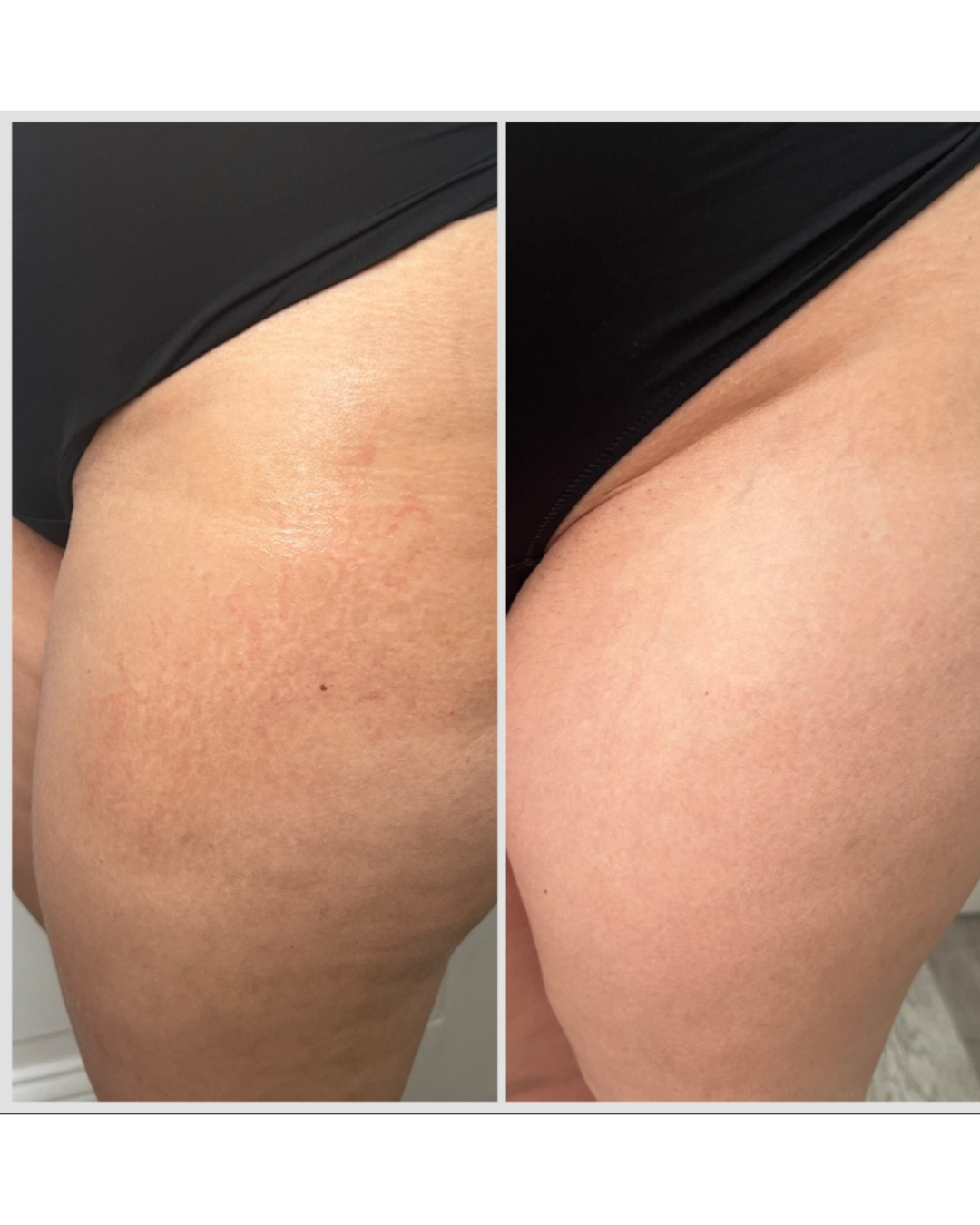 Anstelle von Farbe wird eine wirkungsvolle Kombination aus Seren, natürlichen Ölen und Vitaminen in die Haut eingebracht. Mithilfe einer Tätowiermaschine gelangen diese hochwertigen Wirkstoffe gezielt in die Dermisschicht, wo sie kontrollierte Mikroabschürfungen an den Dehnungsstreifen erzeugen.